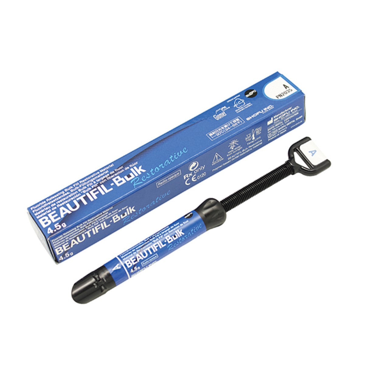 Beautifil-Bulk is a light-cured, bioactive direct resin composite developed for faster, easier and simpler restoration with one single increment of up to 4mm. A unique balance of resin with new monomers and fillers provide deep cure, minimal polymerization shrinkage stress and optimal physical properties with remarkable shade match and all round fluoride protection.