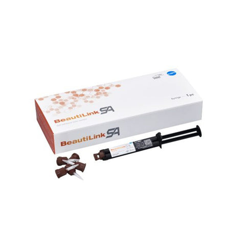 BeautiLink SA is a two-component, dual-cure, self-adhesive resin cement formulated for swift, simple and secure adhesion to a multitude of dental substrates, ranging from tooth abutment to zirconia, porcelain, lithium disilicate, metal, hybrid ceramics and indirect composites. The novel multifunctional monomer formulation with unique silane coupling agent and innovative, highly reactive, yet stable catalyst, facilitates strong, reliable and lasting bond in both light and chemical cure modes, with a secure marginal seal and virtually no post-op sensitivity. The radiopaque cement ensures an easy, mess-free clean-up and a streamlined workflow with less wastage. The stable shades meet daily aesthetic needs with greater predictability of outcome and less error.