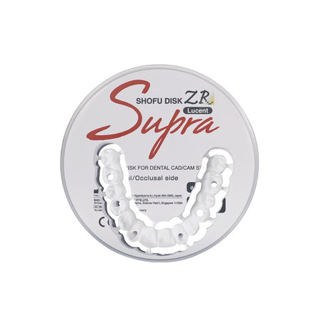 ZR Lucent Supra is a premium multi-layered zirconia that harmonizes remarkable strength with life-like aesthetics. The multi-layered, high-strength CAD/CAM zirconia disk features a seamless gradation of translucency that increases from the cervical towards the enamel zone while maintaining outstanding flexural strength across all layers.